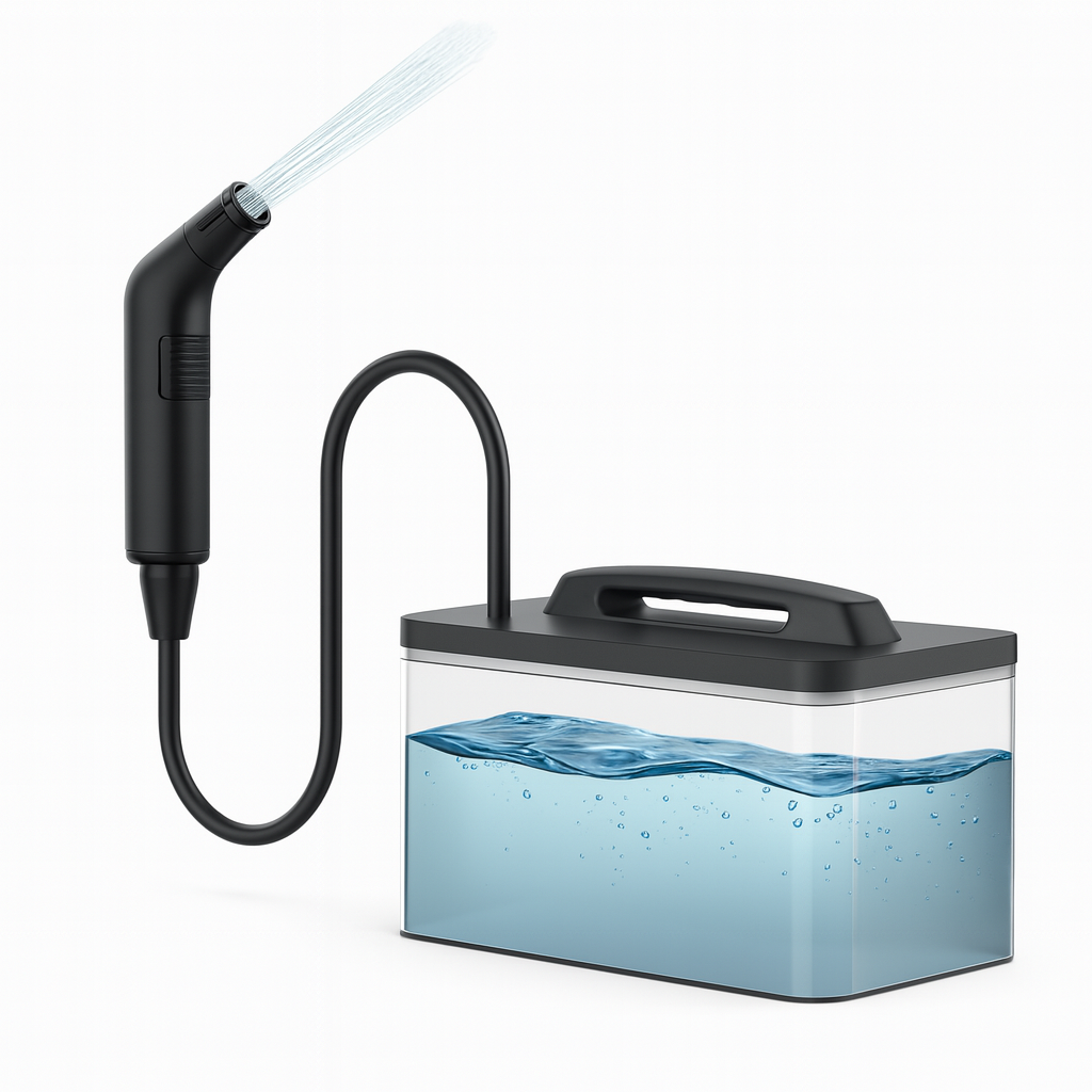 Grâce à son réservoir d’eau intégré, votre douchette fonctionne dans n’importe quelle salle de bain : pas besoin de travaux, ni de plomberie. Remplissez simplement le réservoir, branchez la douchette et profitez d’un rinçage confortable à la maison, en location, en camping-car ou en voyage.